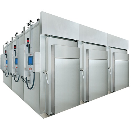 ● 采用模塊化箱體結(jié)構(gòu),排布形式靈活。提供單排或者雙排布置,可以單方向進出推車,也可以做成通道式前后開門,并且加裝生熟區(qū)互鎖裝置。